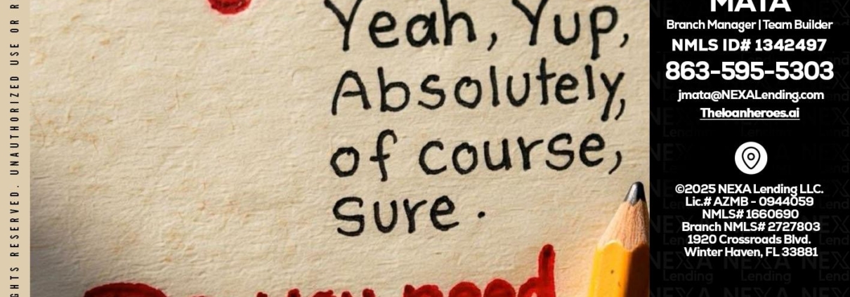 Hi, my name is Joe Mata. I’m a Loan Officer with NEXA Lending LLC., offering personalized mortgage solutions, fast customized quotes, great rates and service with integrity.