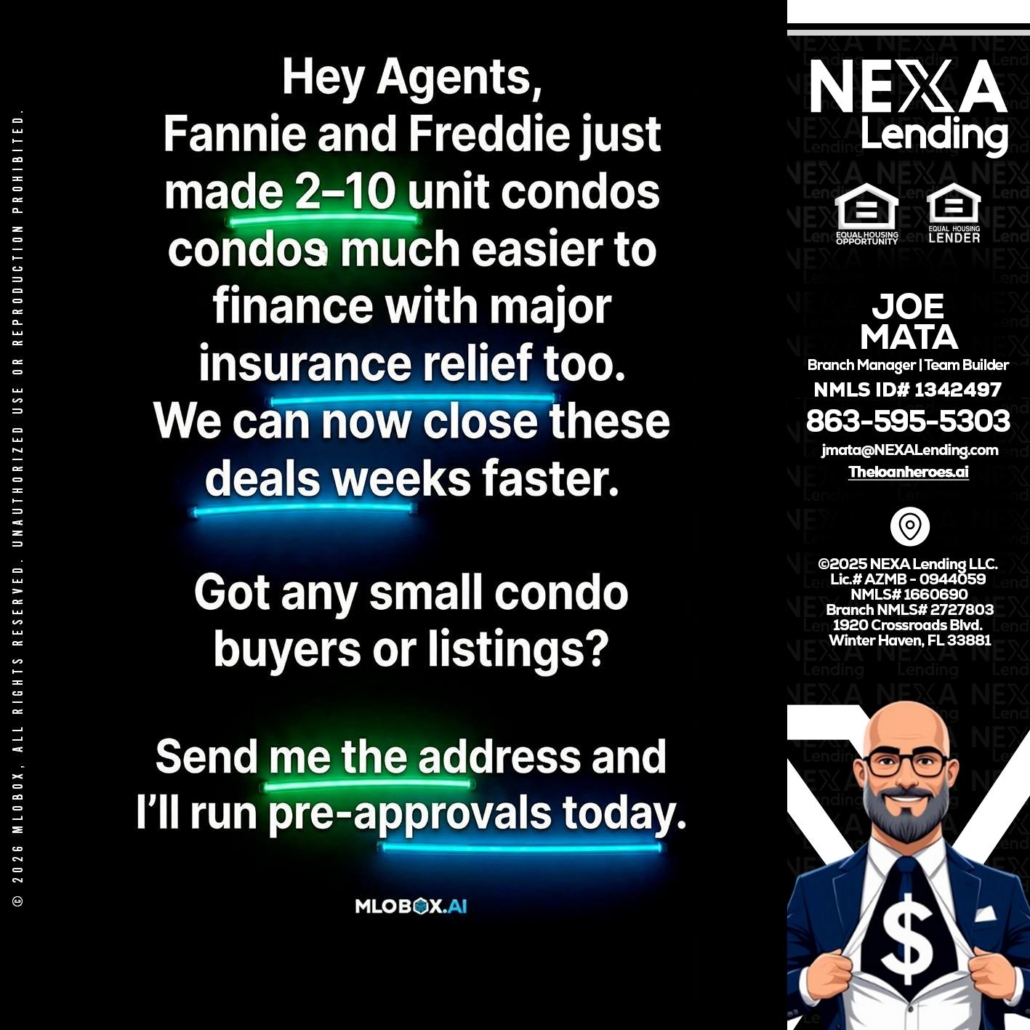 Hi, my name is Joe Mata. I’m a Loan Officer with NEXA Lending LLC., offering personalized mortgage solutions, fast customized quotes, great rates and service with integrity.