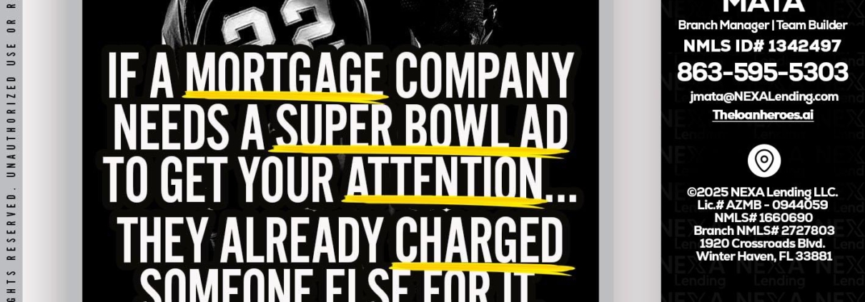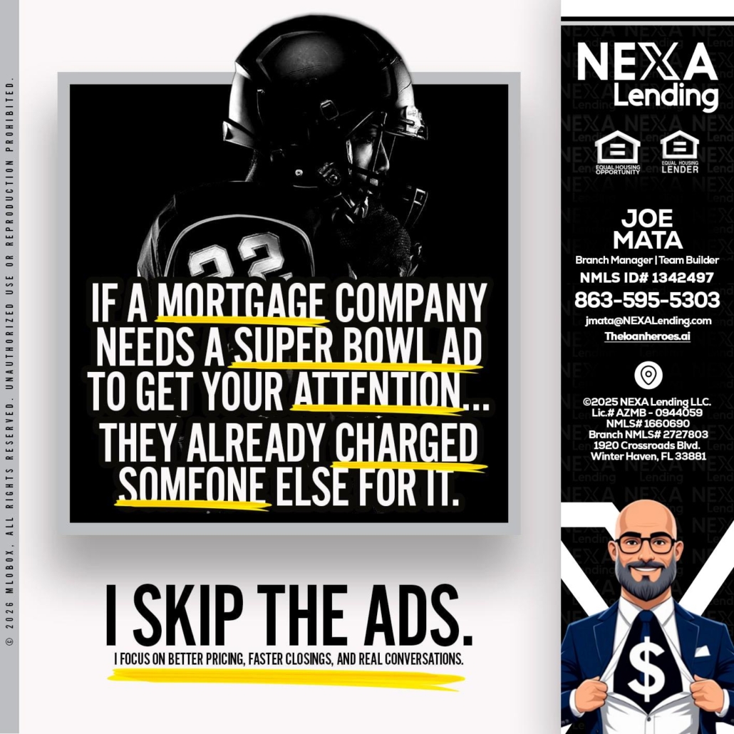if a mortgage ad - Joe Mata -Branch Manager | Team BuilderHi, my name is Joe Mata. I’m a Loan Officer with NEXA Lending LLC., offering personalized mortgage solutions, fast customized quotes, great rates and service with integrity.