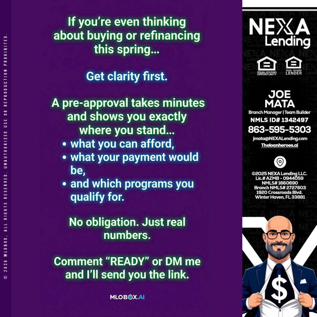Hi, my name is Joe Mata. I’m a Loan Officer with NEXA Lending LLC., offering personalized mortgage solutions, fast customized quotes, great rates and service with integrity.