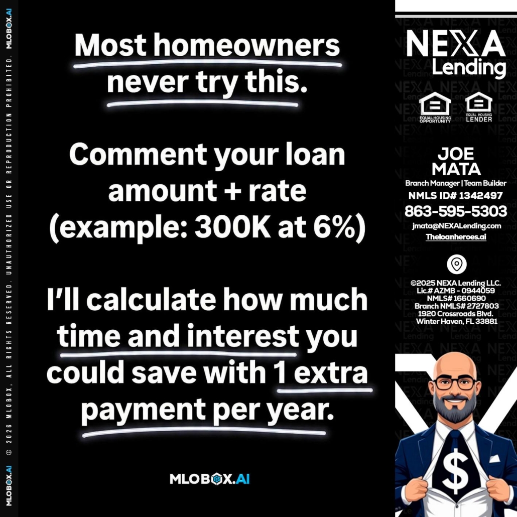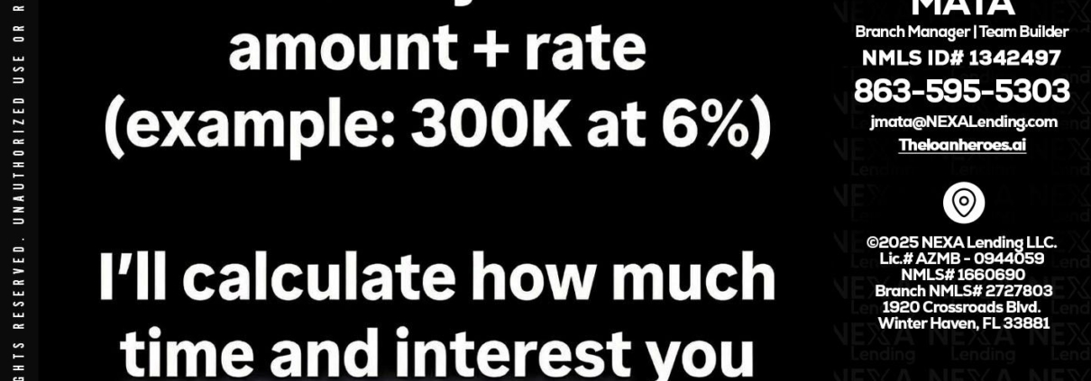 Hi, my name is Joe Mata. I’m a Loan Officer with NEXA Lending LLC., offering personalized mortgage solutions, fast customized quotes, great rates and service with integrity.