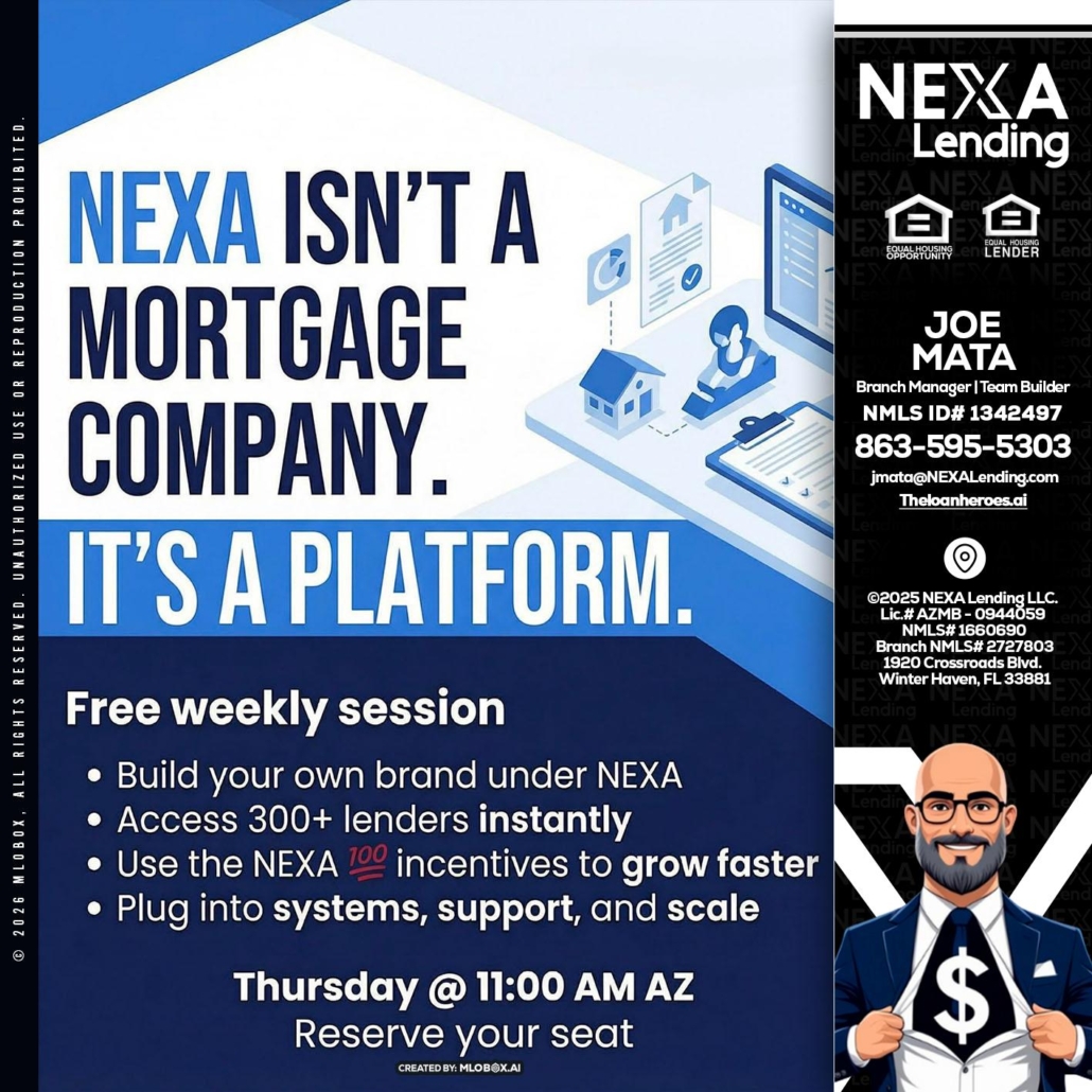 Hi, my name is Joe Mata. I’m a Loan Officer with NEXA Lending LLC., offering personalized mortgage solutions, fast customized quotes, great rates and service with integrity.