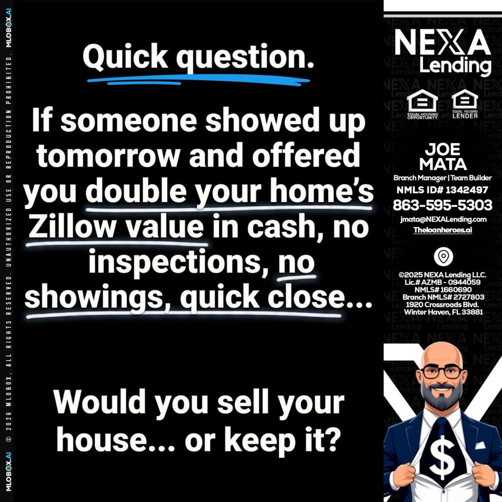 Hi, my name is Joe Mata. I’m a Loan Officer with NEXA Lending LLC., offering personalized mortgage solutions, fast customized quotes, great rates and service with integrity.