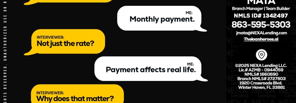 Hi, my name is Joe Mata. I’m a Loan Officer with NEXA Lending LLC., offering personalized mortgage solutions, fast customized quotes, great rates and service with integrity.