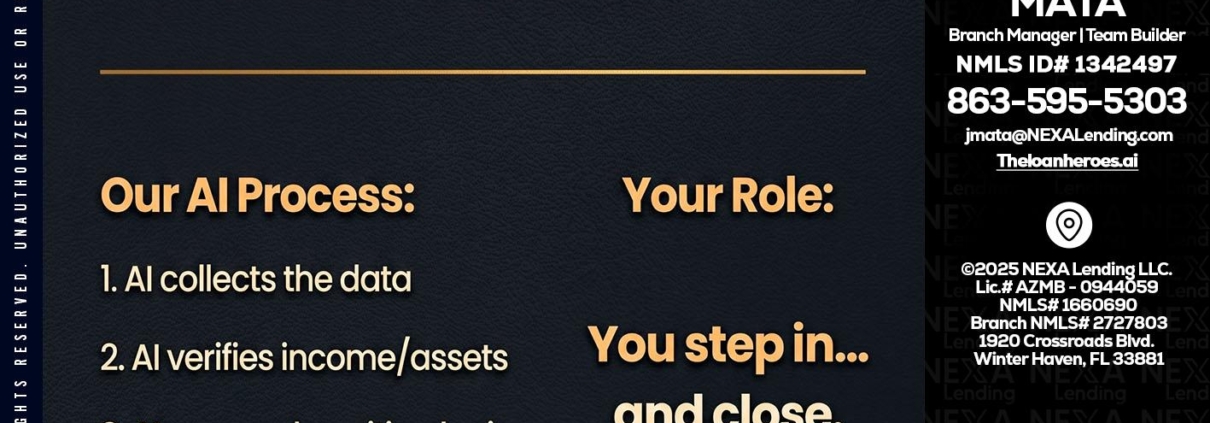 Hi, my name is Joe Mata. I’m a Loan Officer with NEXA Lending LLC., offering personalized mortgage solutions, fast customized quotes, great rates and service with integrity.