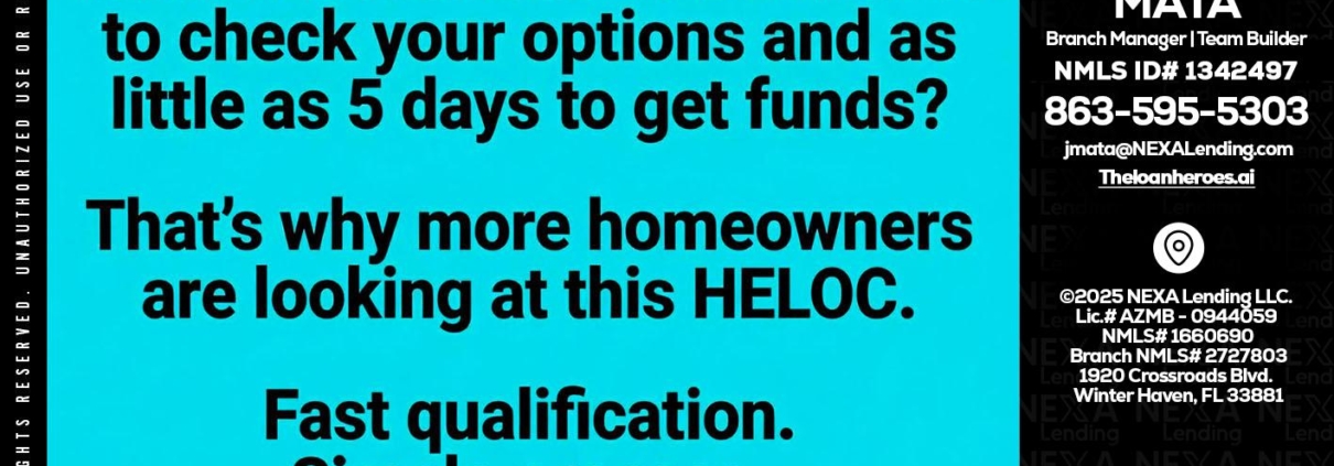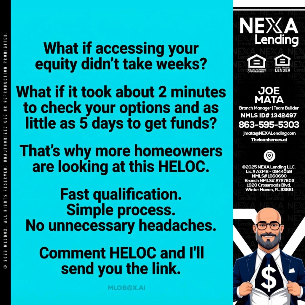 Hi, my name is Joe Mata. I’m a Loan Officer with NEXA Lending LLC., offering personalized mortgage solutions, fast customized quotes, great rates and service with integrity.