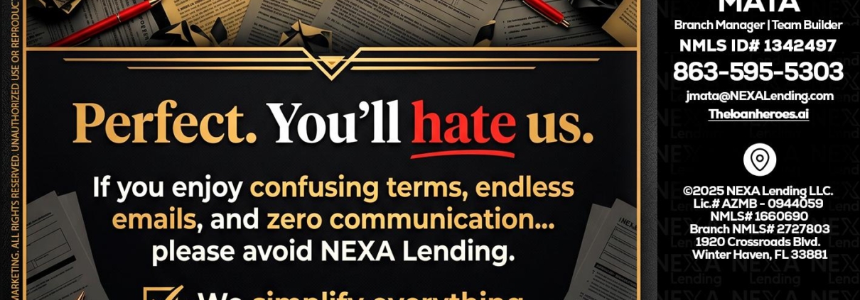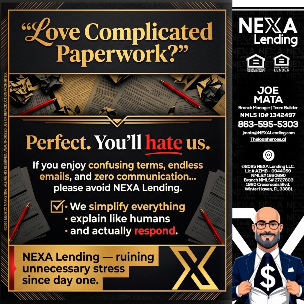 Hi, my name is Joe Mata. I’m a Loan Officer with NEXA Lending LLC., offering personalized mortgage solutions, fast customized quotes, great rates and service with integrity.