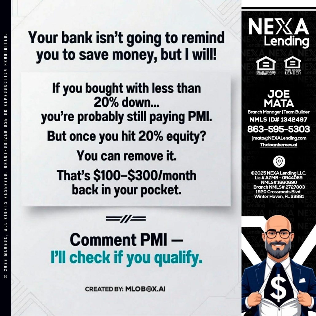 YOUR BANK ISNT - Joe Mata -Branch Manager | Team BuilderHi, my name is Joe Mata. I’m a Loan Officer with NEXA Lending LLC., offering personalized mortgage solutions, fast customized quotes, great rates and service with integrity.